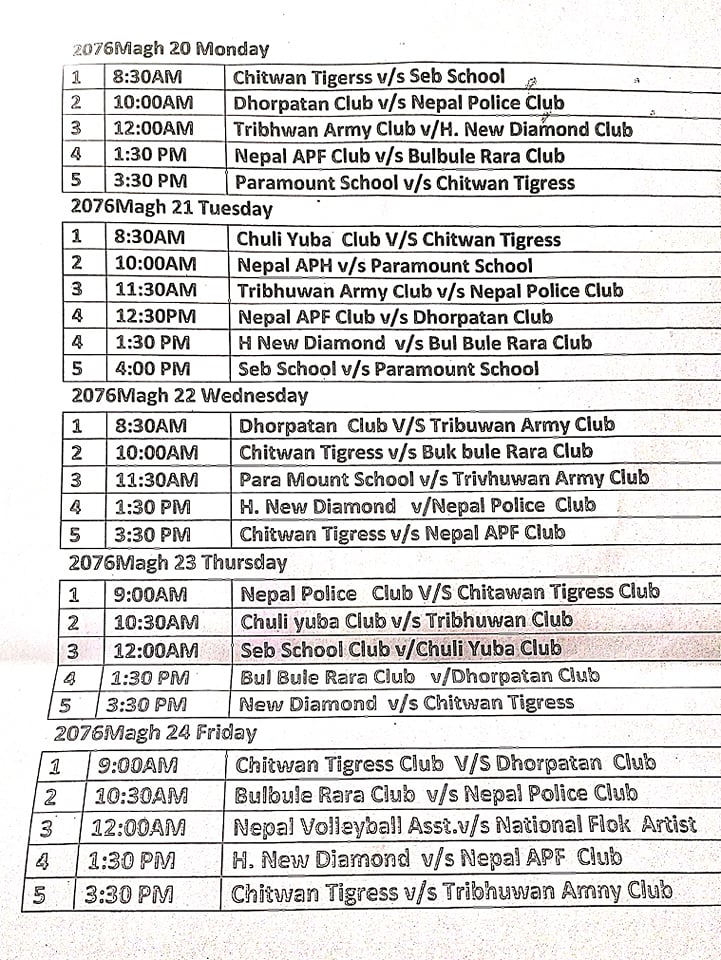 ढोरपाटन महिला लिग भलिबल प्रतियोगिताको खेल तालिका