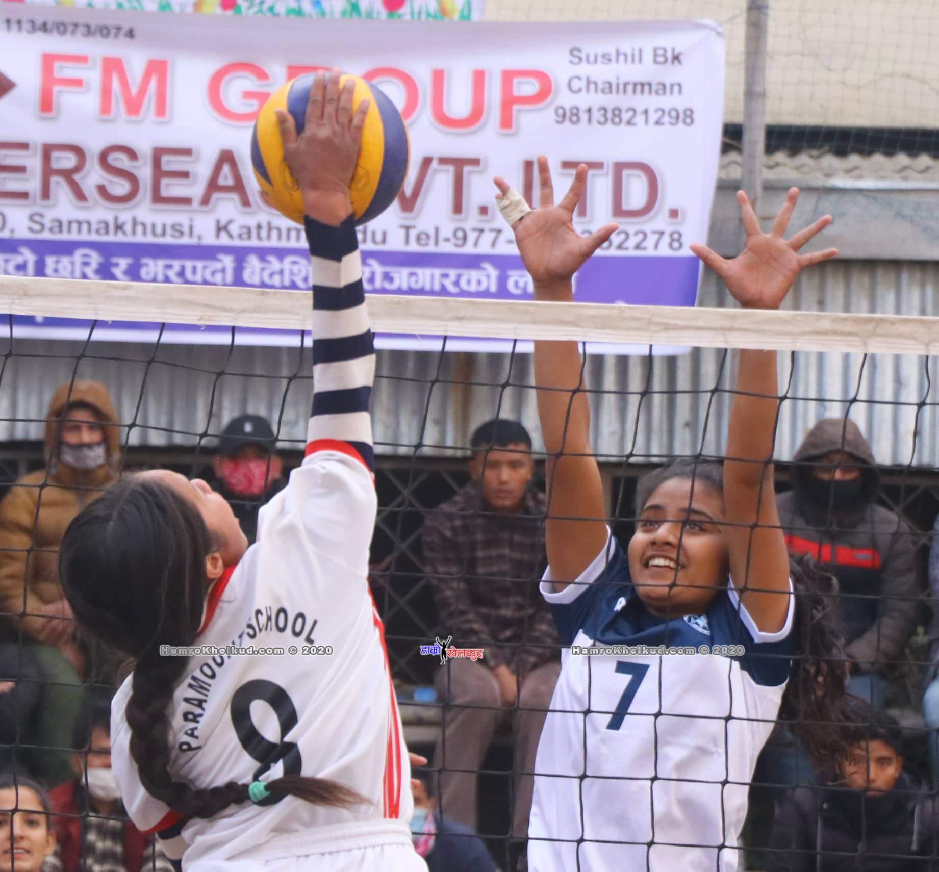 गोंगाबुस्थित बसपार्क नजिकैको कोर्टमा सुरु भएको प्रतियोगिताको पहिलो दिन एपिएफले चुली युवा क्लबलाई २५–६,२५–५ र २५–१३ सोझो सेटले हराएको थियो । चुली युवा क्लब त्यसअघि बुलबुले रारा क्लबसँग पराजित भएको थियो । बुलबुले २५–१४,२५–१४ र २५–१७ ले विजयी भएको थियो । आर्मीले सेब स्कुललाई २५–७,२५–४ र २५–८ को सोझो सेटमा हरायो ।