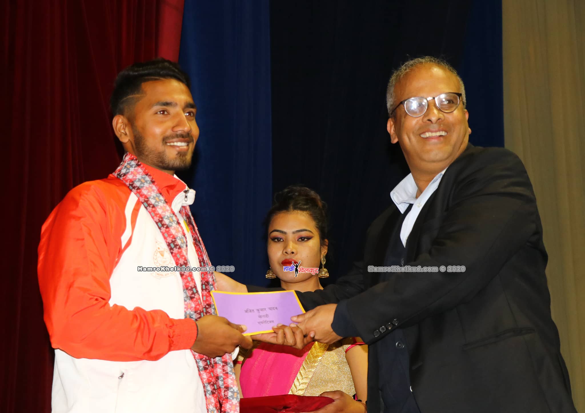 सो अवसरमा जुनियर एसियन एथ्लेटिक्स च्याम्पियनसपिमा स्वर्ण पदक विजता अजितकुमार यादवसहित ४ प्रशिक्षकलाई पनि नगद पुरस्कारबाट सम्मान गरिएको छ ।