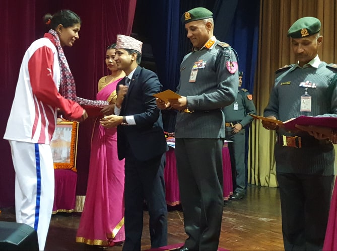 जसमा ८ स्वर्ण, १५ रजत र २२ कास्य पदक रहेको छ । एपिएफले झन्डै २५ लाख रुपैयाँ पुरस्कारमा वितरण गरेको छ । एपिएफको प्रधान कार्यालय हल चोकमा आइतबार आयोजित कायक्रममा महानिरिक्षक शैलेन्द्र खनाल, सशस्त्र प्रहरी अतिरिक्त महानिरिक्षकद्वयय पुष्पराम केसी र रामशर पौडेलले विजेता खेलाडीलाई पुरस्कृत गरे ।
