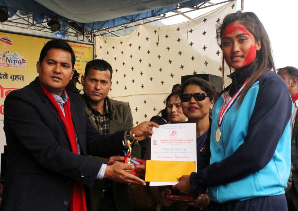 पुलिसकी कमाला पुन उत्कृष्ट सेटर र पुलिसकै कोपिला राना उत्कृष्ट ब्लकर घोषित भइन् । डायमन्डकी पनामिका राई उत्कृष्ट सर्भर तथा डायमन्डकै सलिना श्रेष्ठ उत्कृष्ट लिवेरो चुनिइन् । एपिएफका महेश चौधरी उत्कृष्ट प्रशिक्षक चुनिए । व्यक्तिगत विधाका सबै विजेताले जनही ५ हजार रुपैया हात पारे ।