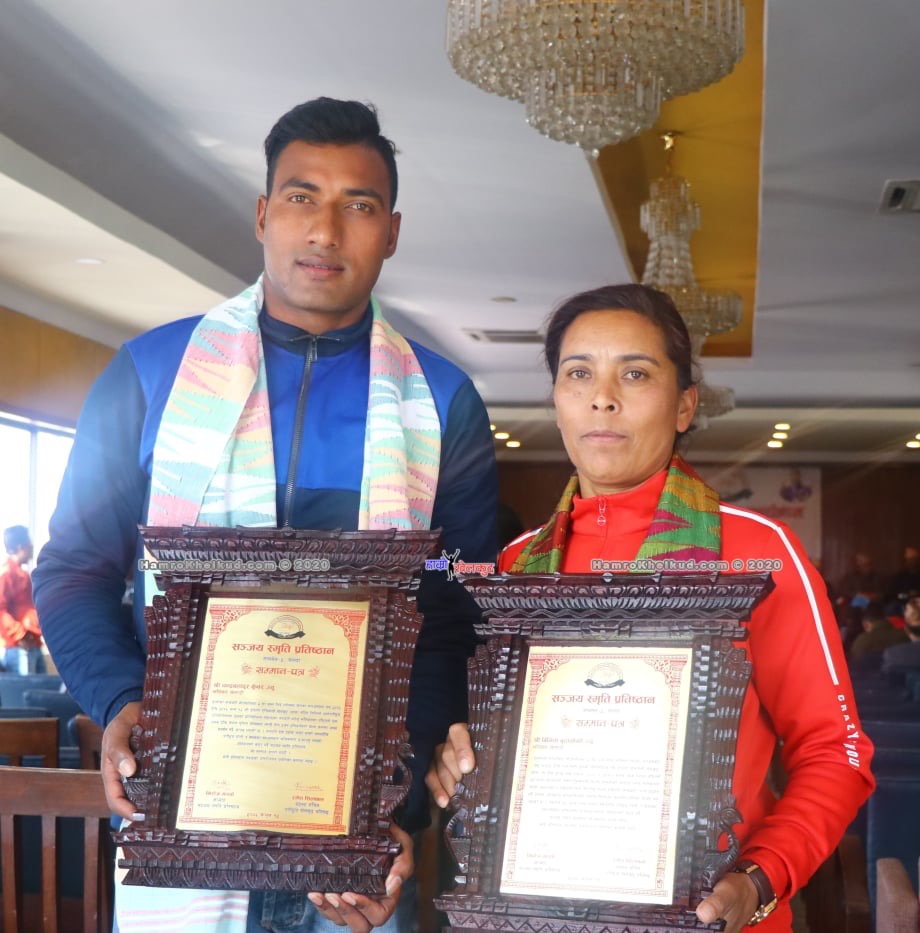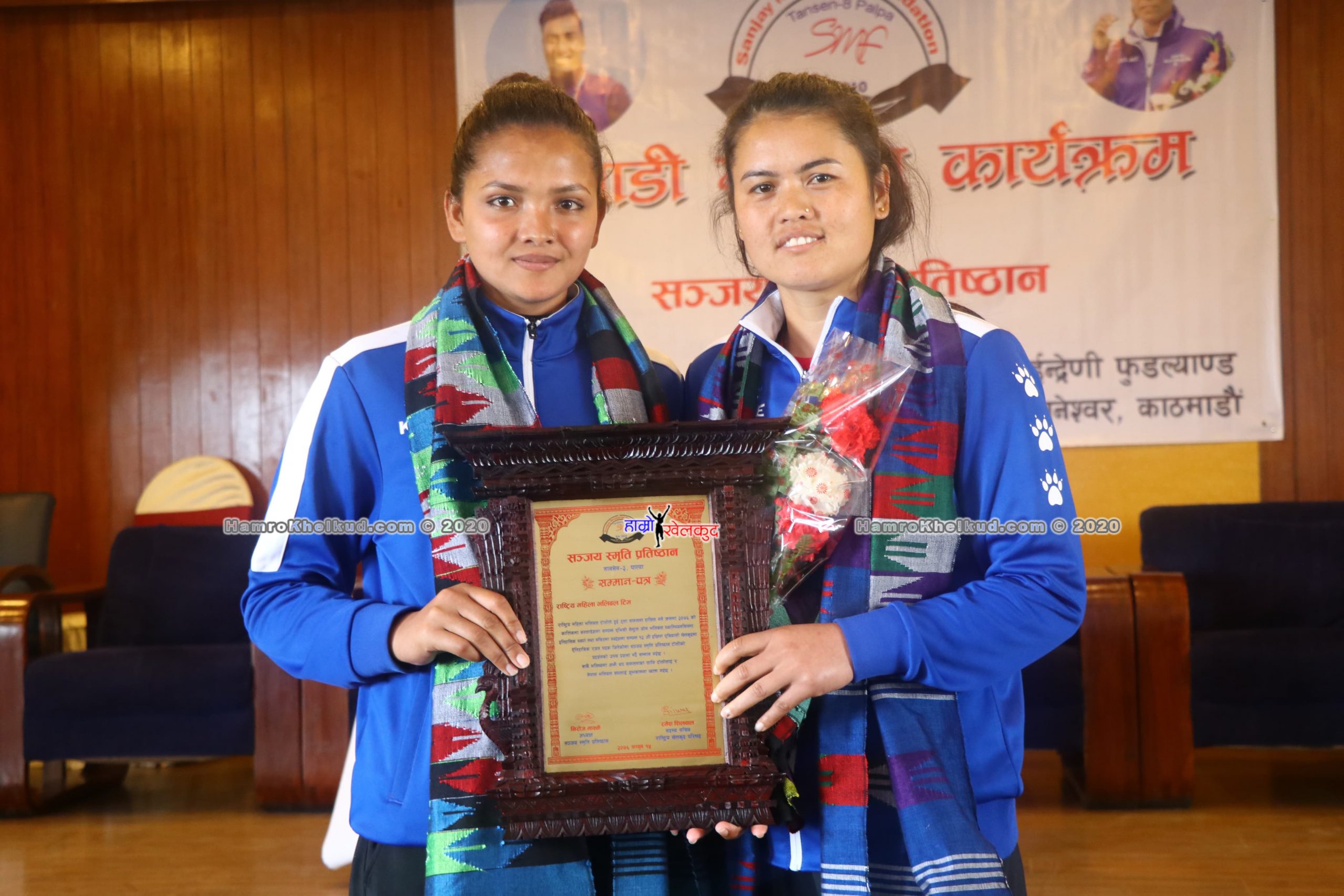 काठमाडौं (हाम्रो खेलकुद) – भलिबल खेलाडी विनिता बुढाथोकी र चन्द्रबहादुर कुँवर सञ्जय स्मृति प्रतिष्ठानद्धारा सम्मानित भएका छन् ।