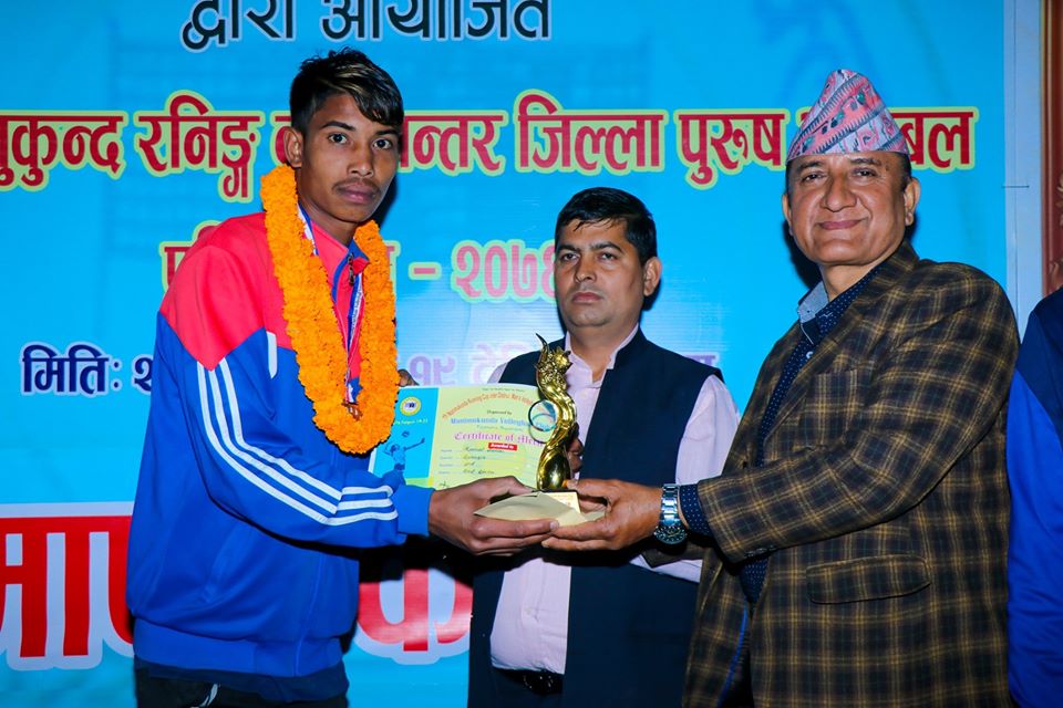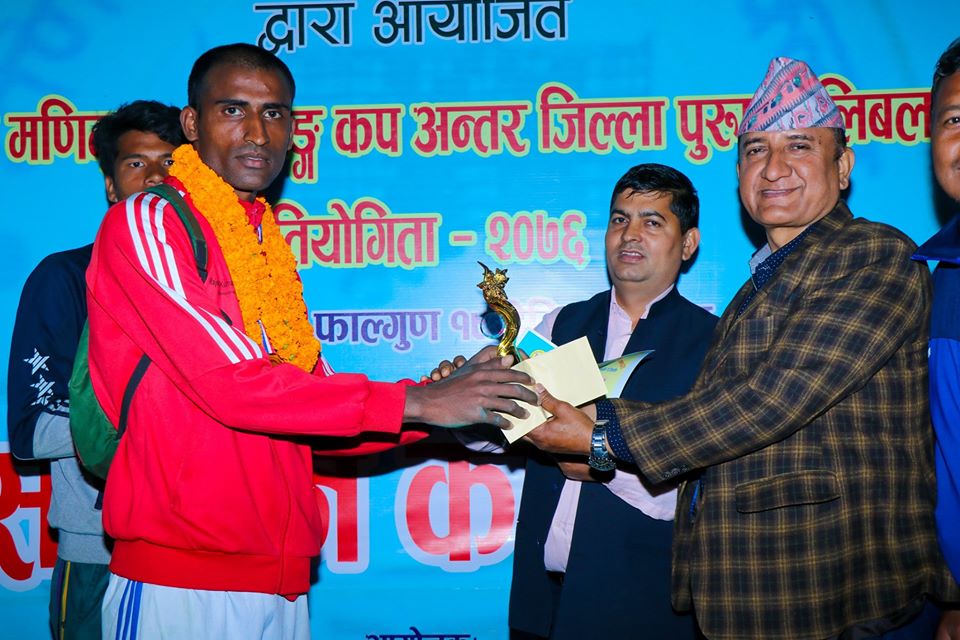 बाग्लुङका राजु विके प्रतियोगिताको सर्वाेत्कृष्ट खेलाडी घोषित भए । बाग्लुङकै कुस्मन थापा अनुशाषित खेलाडी घोषित भए । उनीहरुले समान ५–५ हजार प्राप्त गरे । स्याङ्जाका हरि पाण्डे उत्कृष्ट स्पाइकर, बाग्लुङका मिन सुनार उत्कृष्ट सेटर, रुपन्देहीका प्रप्तम खवास उत्कृष्ट सर्भर, स्याङ्जाका कमल सुनार उत्कृष्ट ब्लकर, रुपन्देहीका जिवस रसाइली उत्कृष्ट लिवेरो, रुपन्देहीकै आदर्श रसाइली उदियमान खेलाडी घोषित हुदा स्याङ्जाका राजेन्द्र शर्मा उत्कृष्ट प्रशिक्षक चुनिए । उनीहरुले समान ३–३ हजार रुपैया हात पारे ।