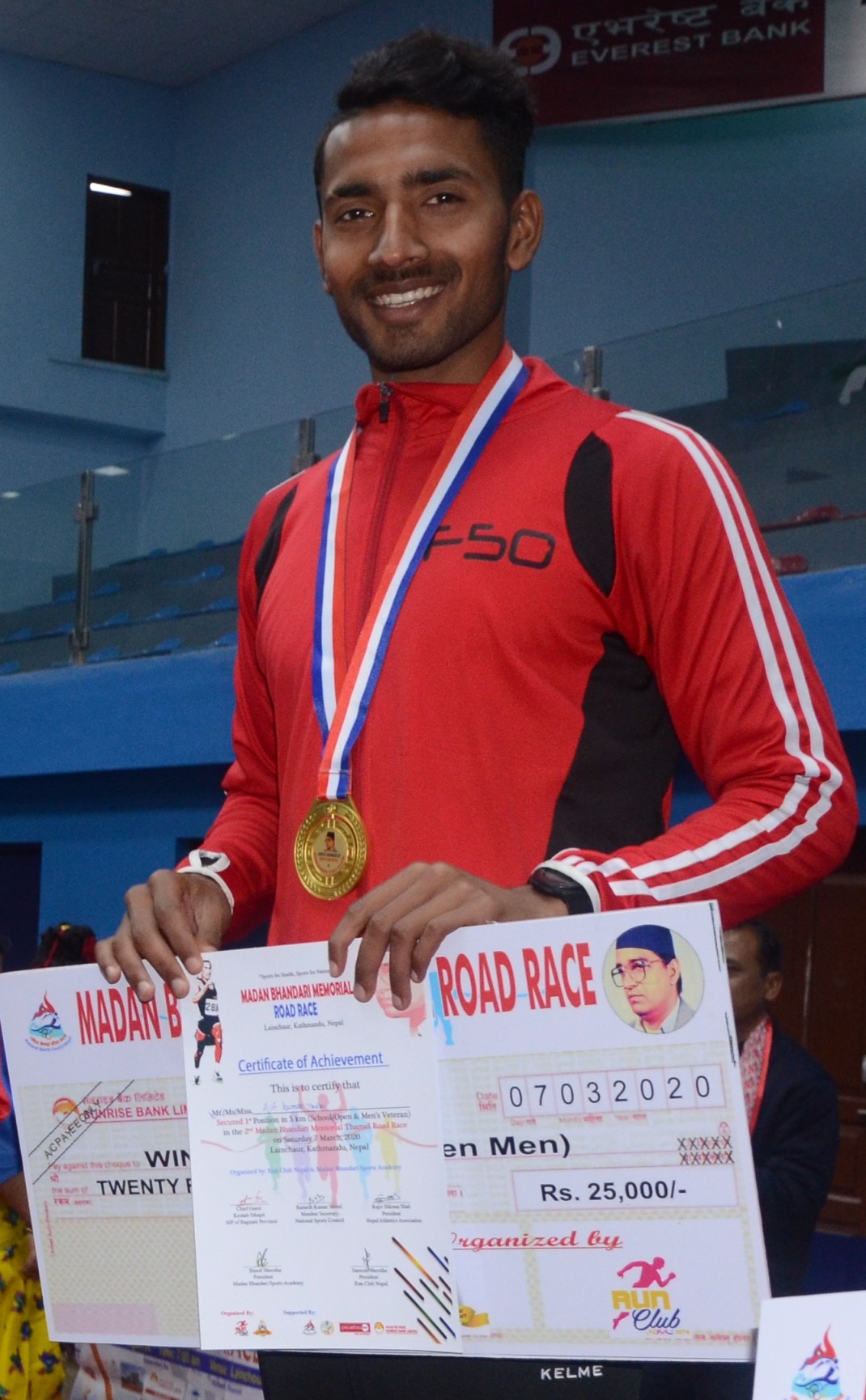 विजेतालाई राष्ट्रिय खेलकुद परिषद्का पूर्व सदस्य–सचिव एवं प्रदेश सांसद् केशव स्थापित, मदन भण्डारी स्पोट्र्स एकेडेमीका महासचिव वचन देउजा, सचिव ओमकृष्ण प्रसाईंलगायतले पुरस्कृत गरे । सोही अवसरमा १३ औं दक्षिण एसियाली खेलकुद (साग) अन्तर्गत एथलेटिक्सको महिला १० हजार मिटर दौडकी स्वर्ण विजेता सन्तोषी श्रेष्ठलाई २५ हजार रुपैयाँसहित सम्मान गरियो ।