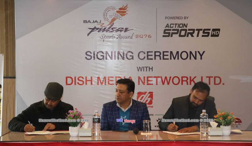 काठमाडौं (हाम्रो खेलकुद)– पल्सर स्पोर्टस अवार्डमा डिस मिडिया नेटवर्क लिमिटेड मुख्य सह प्रायोजकका रुपमा निरन्तर रहेको छ । अवार्डको आयोजक नेपाल खेलकुद पत्रकार मञ्च र डिस मिडियाबीच बुधबार आयोजित एक कार्यक्रममा सम्झौता भएको थियो ।