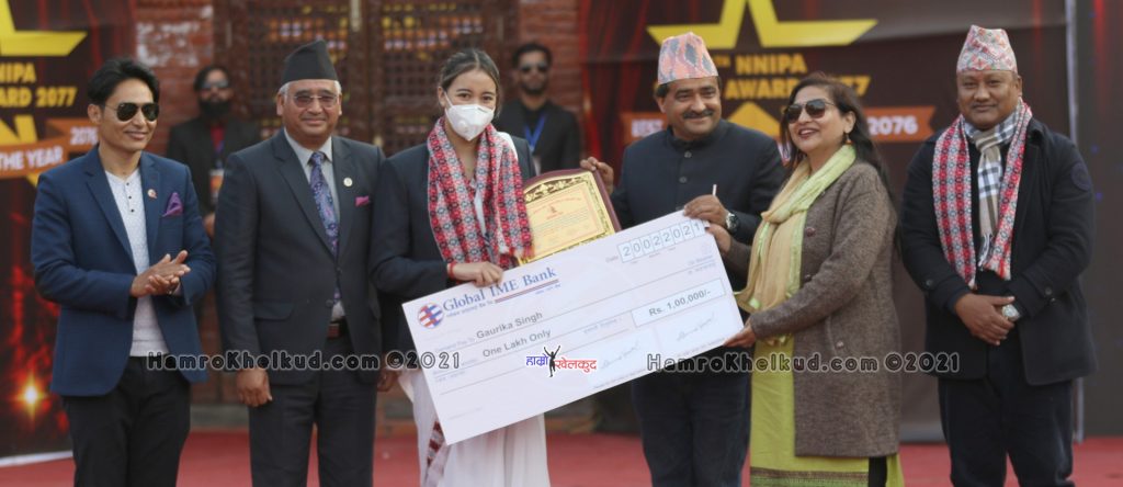 गौरिका र मन्देले ग्लोबल आइएमई बैंकबाट प्रायोजित समान १ लाख रुपैयाँ प्राप्त गरे । एनएनआइपिएका मानार्थ अध्यक्ष दीपक विष्टको संयोजकत्वमा रहेको छनोट समितिले सर्वोत्कृष्ट खेलाडीको छनोट गरेको थियो ।