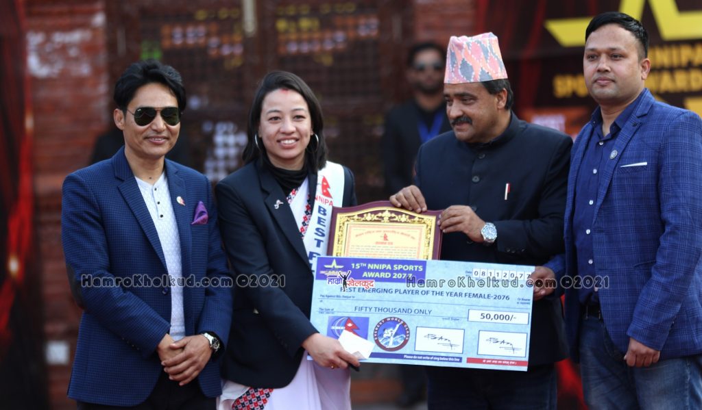 राष्ट्रिय तथा अन्तर्राष्ट्रिय खेलाडी (एनएनआइपिए) ले शनिबार मध्यपुर थिमीमा १५ औं स्पोर्टस अवार्ड आयोजना गर्दै आयशा र सुजललाई प्रतिभावान खेलाडी घोषित गरेको हो ।