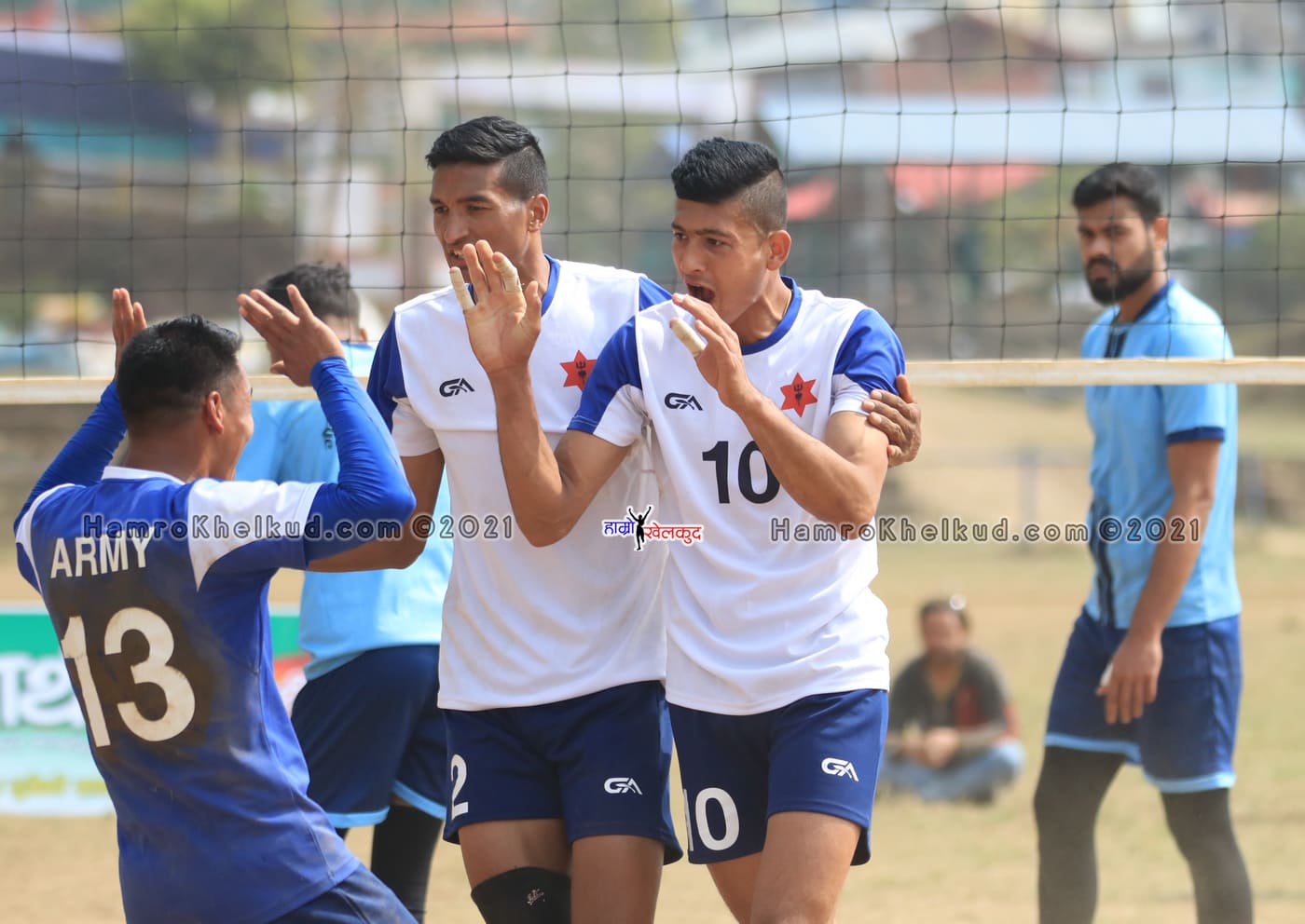 पहिलो सेटमा विजयी भएको आर्मीले दोस्रो र तेस्रो सेटमा भने लगातार पराजित भएको थियो । तर चौथो र पाँचौं सेटमा उत्कृष्ट प्रर्दशन गर्दै जित निकालेको हो । चौथो सेटमा उत्कृष्ट पूनरागमन गर्दै आर्मीले २५-१४ को सोझो सेटमा जित निकालेको थियो । निर्णायक पाँचौं सेटमा आर्मीले १५-८ हराउँदै लगातार दोस्रो सेटमा जित निकालेको हो ।