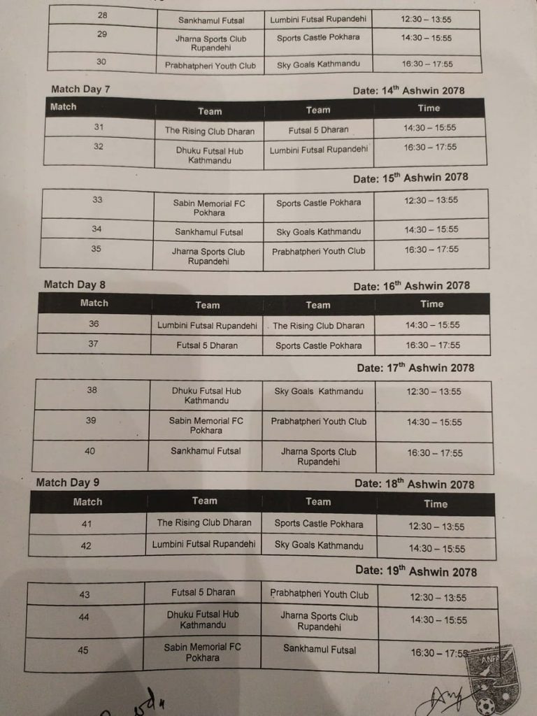 जेठ १ देखि २२ जेठसम्म हुनुपर्ने फुटसल लिग कोरोना भाइरसको दास्रो लहरका कारण स्थगित भएको थियो । लिगको विजेताले १० लाख रुपैयाँ पाउनेछ भने उपविजेताले ५ लाख रुपैयाँ पाउनेछ । लिगको विंगर (आला-पिभोट), डिफेन्डर (फिक्सो), उदियमान खेलाडी, गोलरक्षक र प्रशिक्षकले समान २५ हजार पाउनेछन् ।