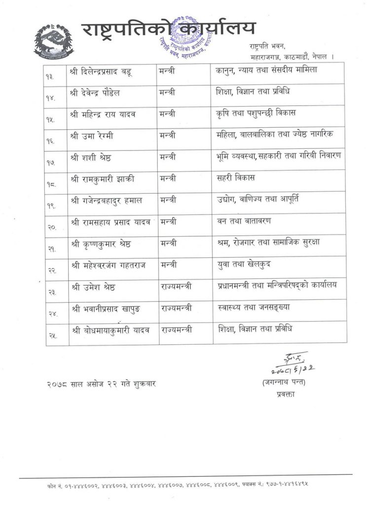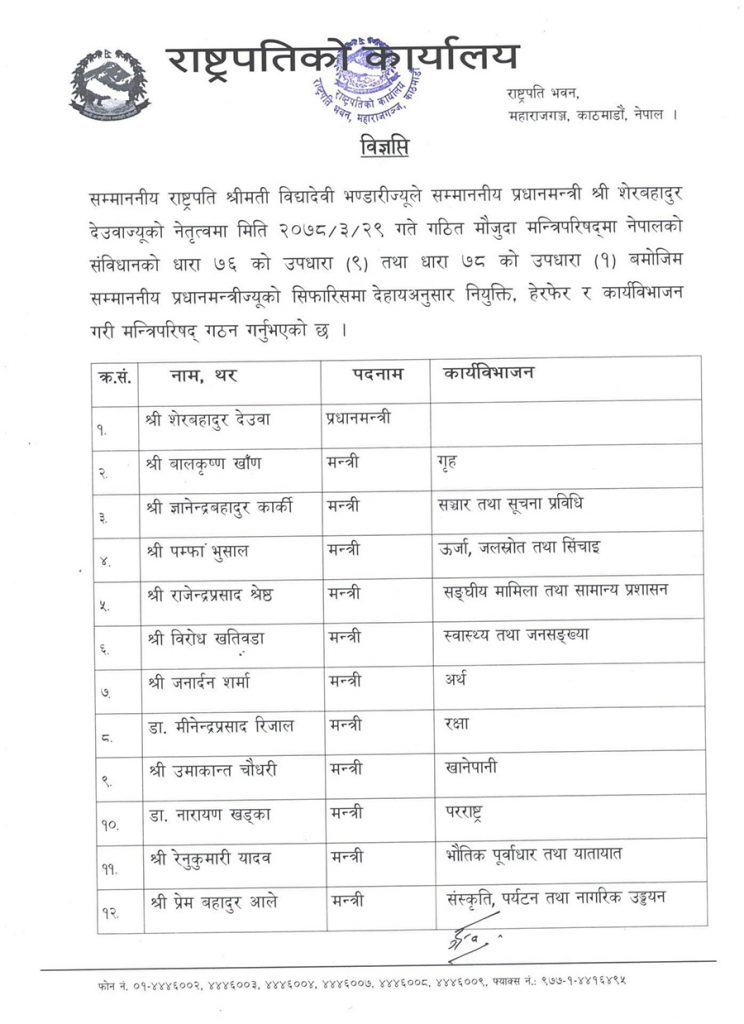 राष्ट्रपति विद्यादेवी भण्डारीले प्रधानमन्त्री देउवाको सिफारिसमा गहतराजसहित १६ मन्त्री र २ राज्यमन्त्रीलाई शुक्रबार नियुक्त गरेकी हुन् । बाँके क्षेत्र नंम्बर १ बाट निर्वाचित गहतराज पहिलो पटक मन्त्री बनेका हुन् । राष्ट्रिय खेलकुद परिषद् (राखेप) का अध्यक्ष समेत रहने मन्त्री गहतराजले राखेप बोर्डको बैठकबाट नवौं राष्ट्रिय खेलकुदको मिति तय गर्नुपर्ने हुन्छ । गत वर्ष गठन भएको राखेपको अहिले सम्म बैठक बस्न सकेको छैन ।
