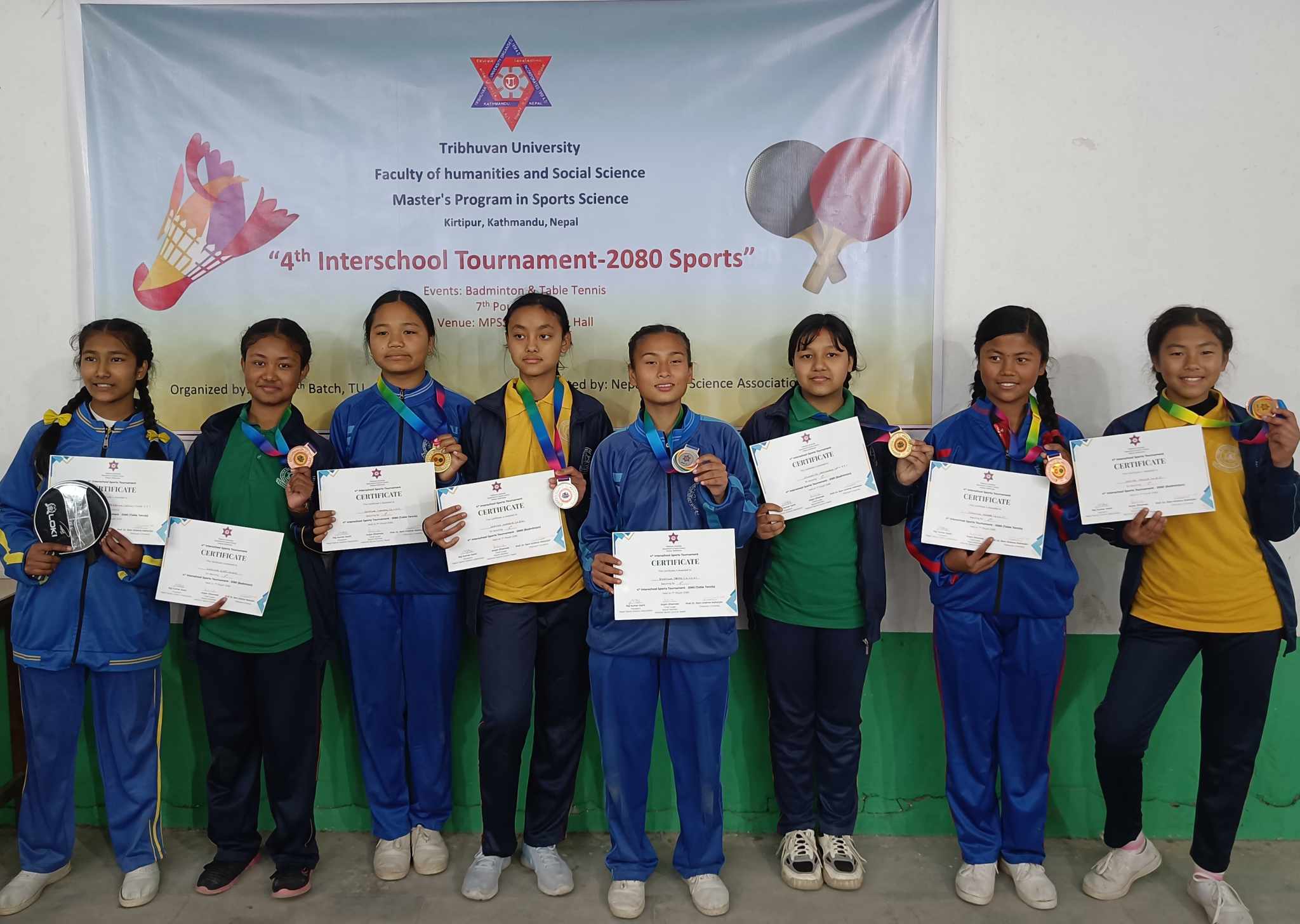 प्रतियोगितामा गल्र्स ब्याडमिन्टन र टेबल टेनिसमा बानेश्वरको श्रृष्टी एकेडेमी, न्यू डायमण्ड एकेडेमी, ग्रिन भिलेज एजुकेसन फाउन्डेसन, पृथ्वी मावि र तारा मावि गरि ५ विद्यालयका २४ खेलाडीको सहभागिता रहेको थियो । दुबैतर्फ समान १२ खेलाडीले प्रतिस्पर्धा गरेका थिए ।