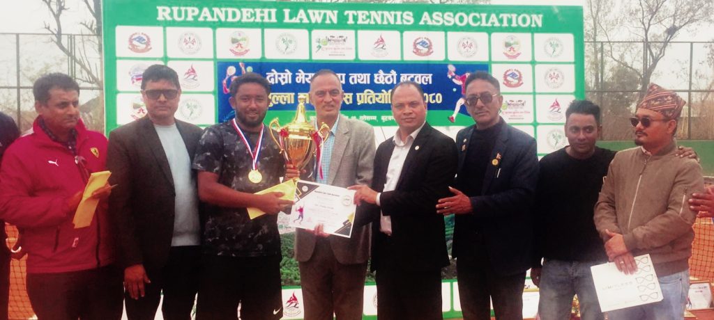 विजेता खेलाडीलाई बुटवल उपमहानगरपालिकाका प्रमुख खेलराज पाण्डे, लुम्बिनी प्रदेश खेलकुद परिषदका सदस्य सचिव जयप्रकाश भट्टराई, रुपन्देही लन टेनिस संघका अध्यक्ष गोपाल ज्ञवालीले पुरस्कृत गरे ।