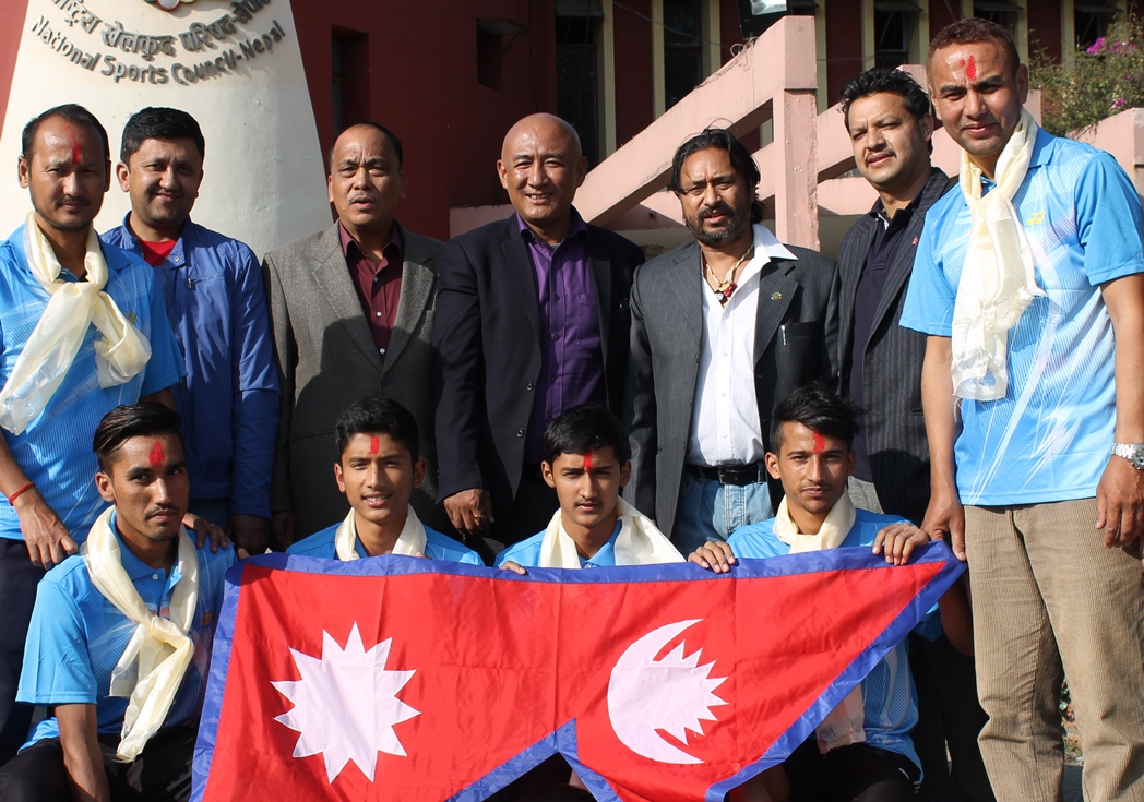 टोलीलाई सफलताको शुभकामना दिदै राष्ट्रिय खेलकुद परिषद् (राखेप) का उपाध्यक्ष एवं नेपाल ओलम्पिक कमिटीका महासचिव लामा टेन्डी शेर्पा, राखेप सदस्य राजेन्द्र श्रेष्ठ (राजु) र ब्याडमिन्टन संघका पदाधिकारीलगायतले बिदाइ गरे ।