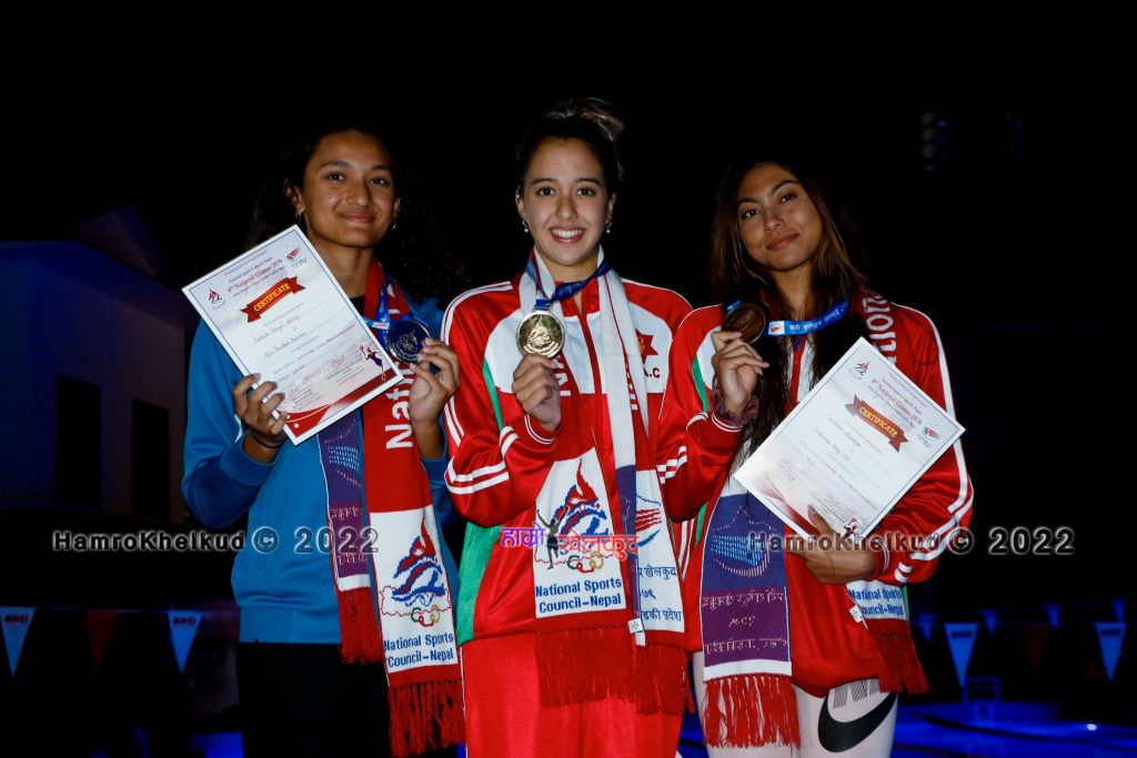 पोखरास्थित फिस्टेल एकेडेमीको पौडी कोर्समा गौरिकाले १ मिनेट ५.५ सेकेन्डको समय निकाल्दै १ सय मिटर ब्याकस्ट्रोकमा स्वर्ण पदक जितेकी हुन् । यसमा ४ वटा स्वर्ण पदक जितिसकेकी एनआरएनएकी एस्ली सापकोटा डंगोलले रजत र आर्मीकी अनुषिया तन्डुकारले कास्य पदक जितेकी छिन् । एस्लीको समय १ मिनेट ८.७९ सेकेन्ड र अनुषियाको १ मिनेट १३.८ सेकेन्ड रहेको छ ।