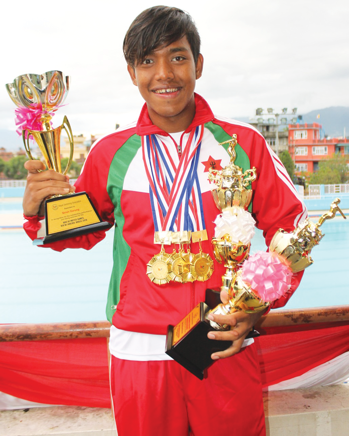 काठमाडौं (हाम्रो खेलकुद)– सानै उमेरबाट चर्चामा रहँदै आएका ओलम्पियन पौडी खेलाडी शीरिष गुरुङ भविष्यमा पनि नेपाली खेलकुदसँगै जोडिरहन चाहन्छन् । ५ बर्षको उमेरमा गाडी चलाएर धेरैलाई चकित पारेका शीरिषले उमेर बढ्दै जाँदै खेलकुदबाट पनि ख्याती कमाए। गत बर्ष भएको सातौं राष्ट्रिय खेलकुदमा पौडीका १७ मध्ये १६ मा भाग लिए र भाग लिएका सबैमा स्वर्ण पदक जित्ने क्रममा ५ वटा राष्ट्रिय कीर्तिमानका बनाएका थिए । ४६ पटक सम्म राष्ट्रिय कीर्तिमान भंग गरिसका उनको नाममा अहिले पनि १४ वटा कीर्तिमान छ । उनले आफुले कीर्तिमान राखेको इभेन्ट थाहा छ तर, सबैको टाइमिङ भने याद छैन ।