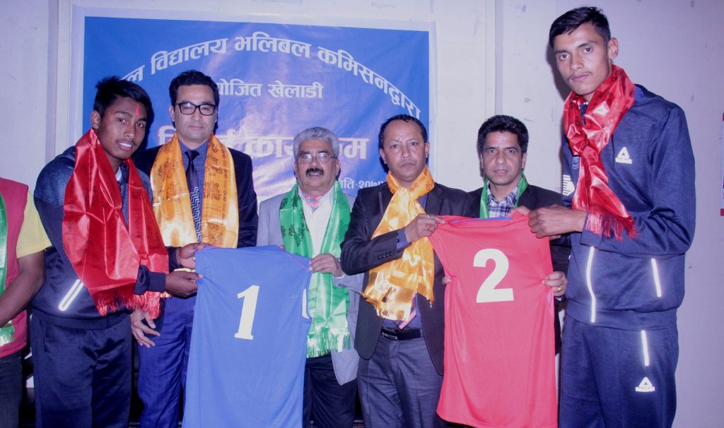 नेपाल विद्यालय भलिबल कमिसनले मंगलबार एक कार्यक्रम गर्दै थाइल्याण्ड जाने दुई खेलाडी अशोक सुनार र प्रकास केसी तथा प्रशिक्षक जगदिश भट्टलाई बिदाई गरेको हो । खेलाडी र प्रशिक्षकलाई नेपाल भलिबल संघका अध्यक्ष मनोरञ्जन रमन शर्मा, महासचिव जितेन्द्रबहादुर चन्द, विद्यालय कमिसनका अध्यक्ष राम केसी, सचिव लोकेन्द्र खड्कालगायतले बिदाई गरे ।